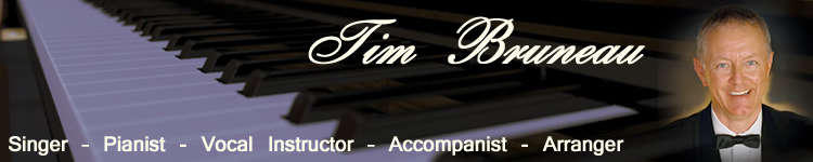 Tim is also a successful vocal instructor and currently maintains a studio of private students, ranging in age from fourteen to seventy-four.  He is also available as an accompanist, musical director and arranger.